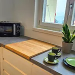 The accommodation comprises a balcony and a fully equipped kitchen and features views of the garden. Enhancing your comfort, a shower can be found at the apartment. Furthermore, hair dryers and bath sheets is available.